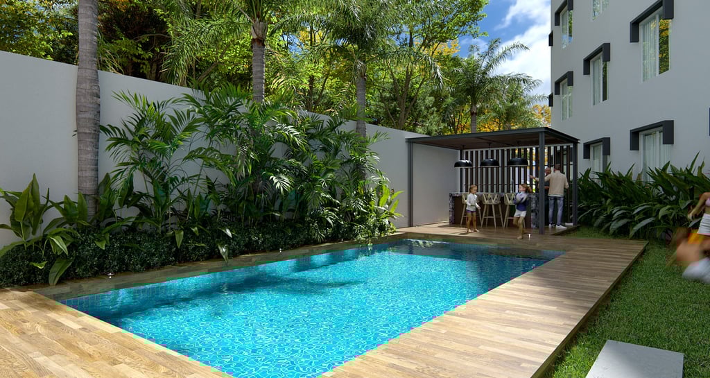 Explora nuestros departamentos y áreas recreativas en el Condominio San Peregrino.